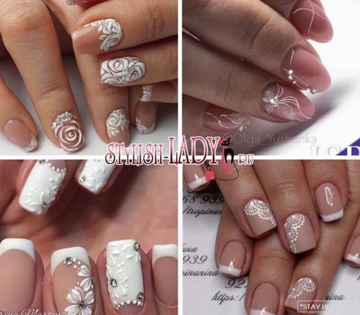 стразамі або бліскаўкамі або прамалявана вензелямі; - спалучэнне фрэнча і месяцовага. Падобны тып пакрыцця