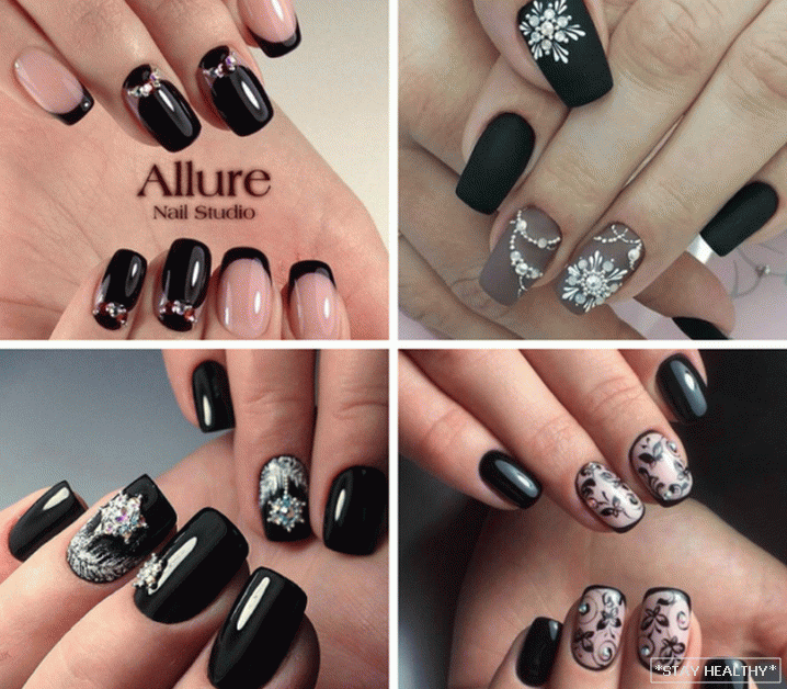 нязвычайны манікюр ў чорным колеры