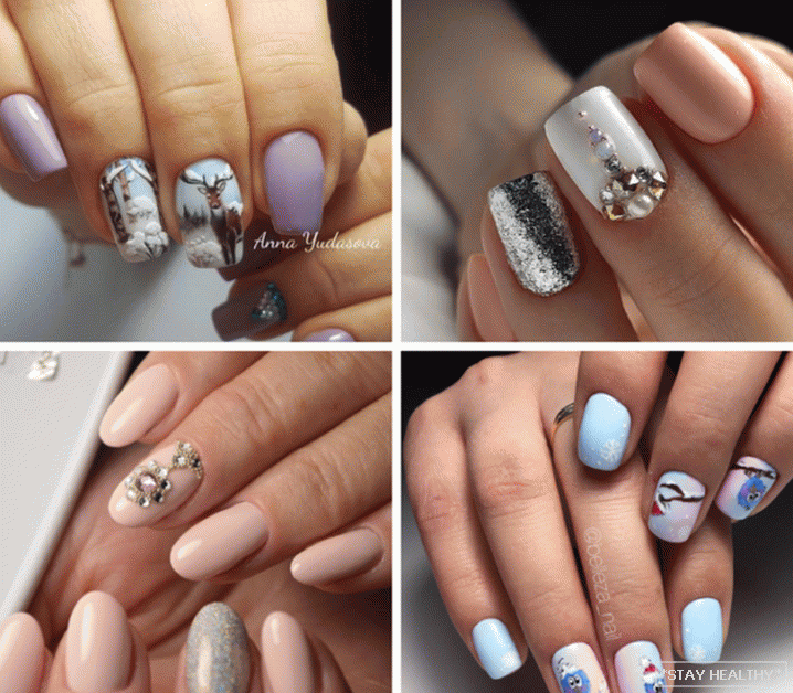 Уарыянтаў і ідэй навагодняга манікюру на кароткія пазногці шмат,