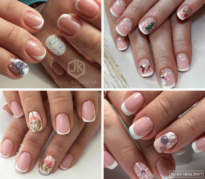 - Навагодні фрэнч на кароткія пазногці