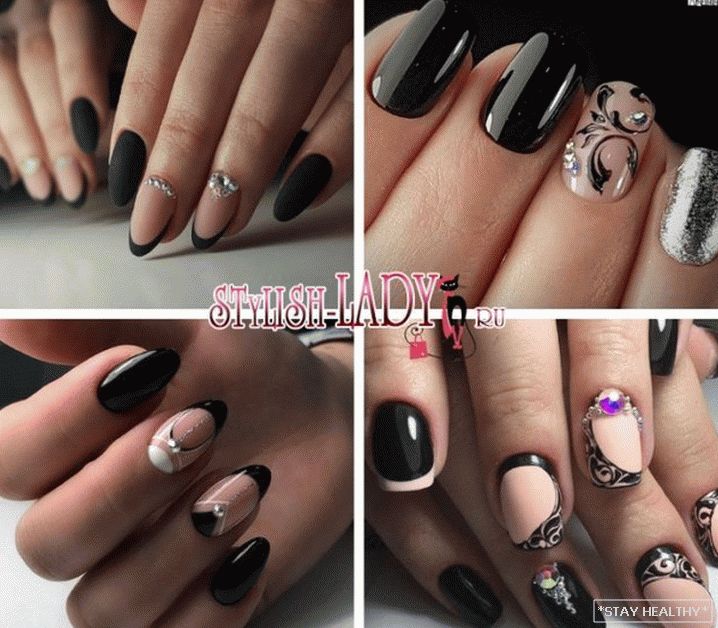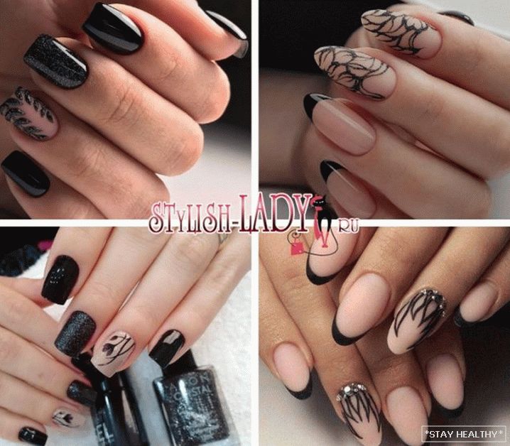 манікюр не выглядае сумна. Чорны колер надае яркасці і