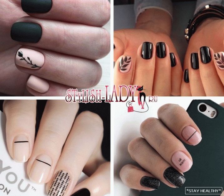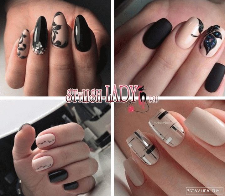 для нейл-арта лічыцца спалучэнне бэжавага і чорнага ногцевых