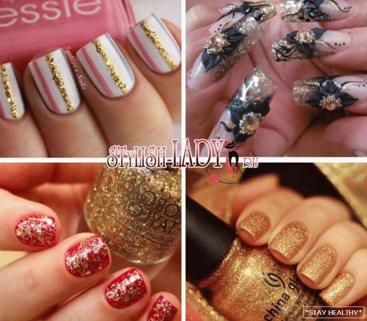 - Варыянты манікюру з залатымі бліскаўкамі