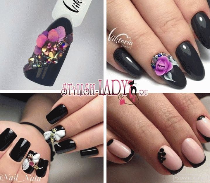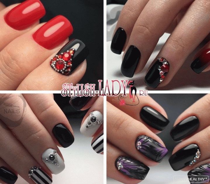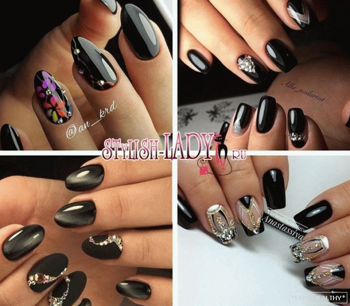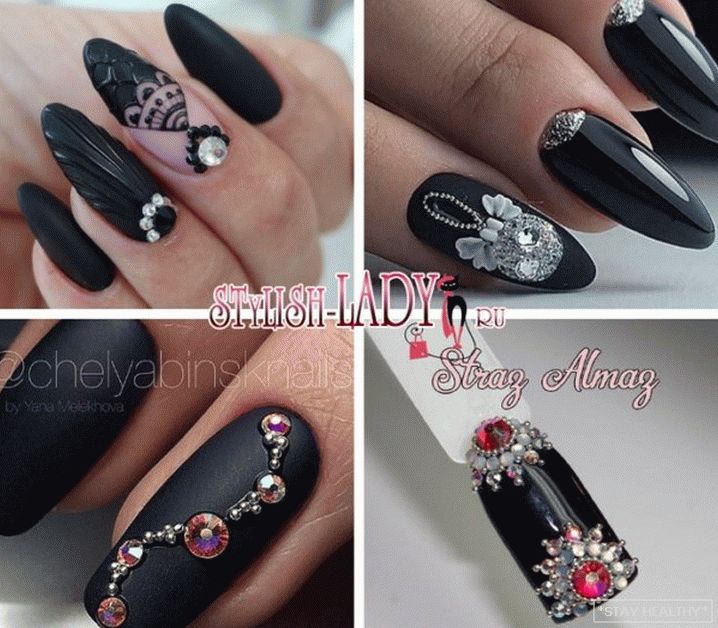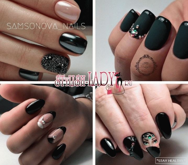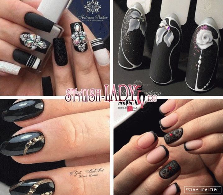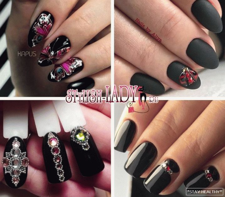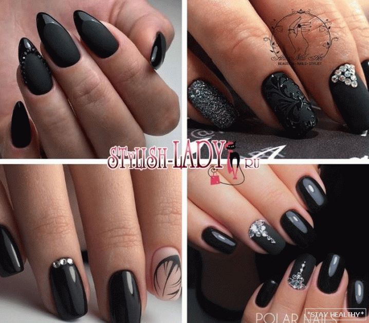 адпавядае цёмнага пакрыццю. - Пры жаданні стварыць чорны манікюр са стразамі на кароткіх