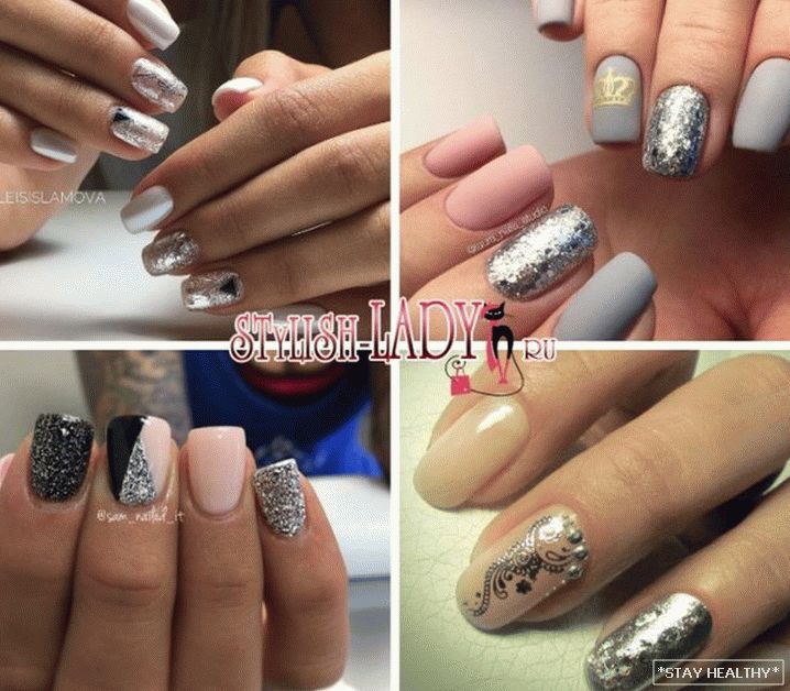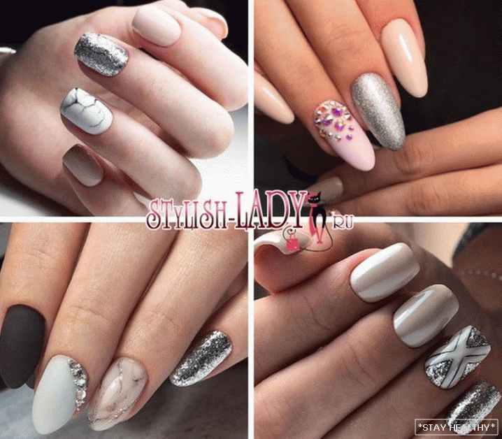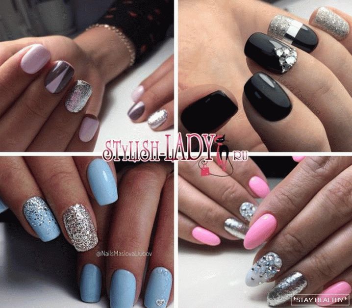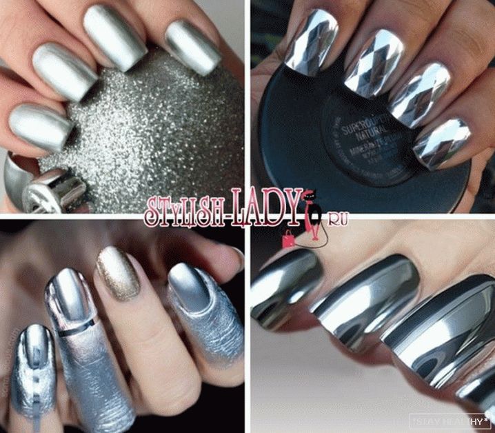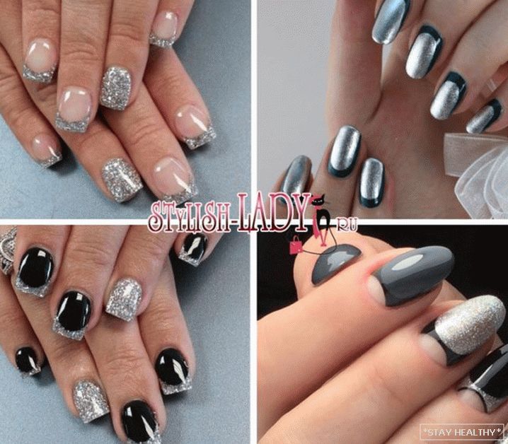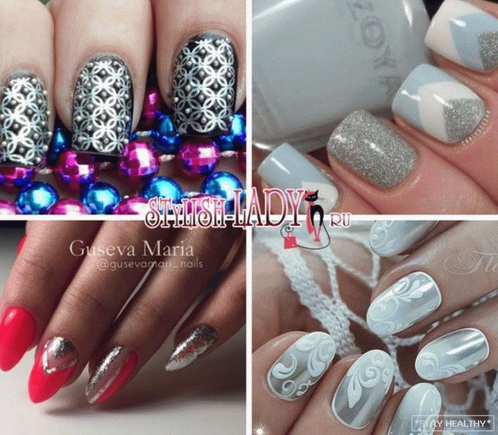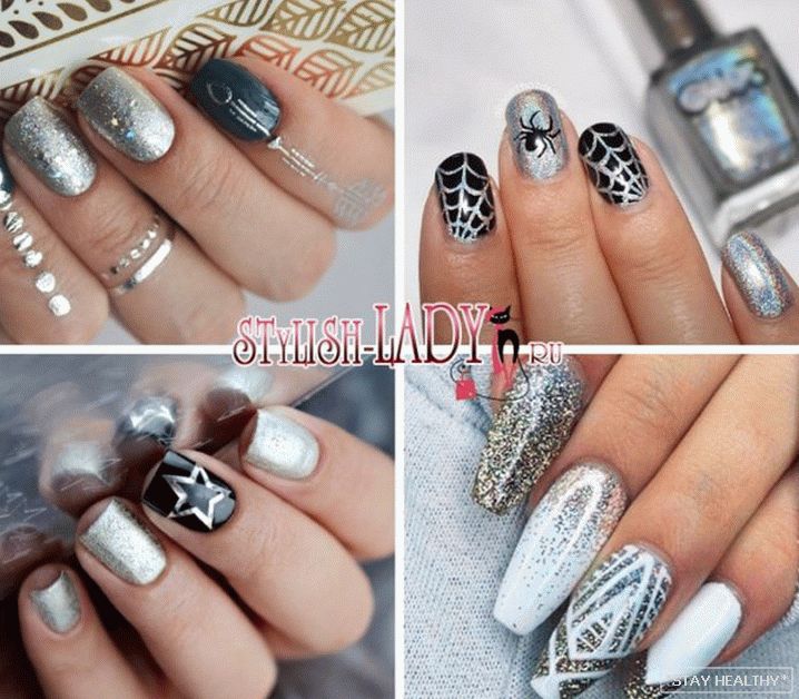 Розныя варыянты манікюру ў серабрыстых тонах