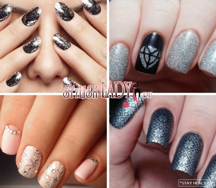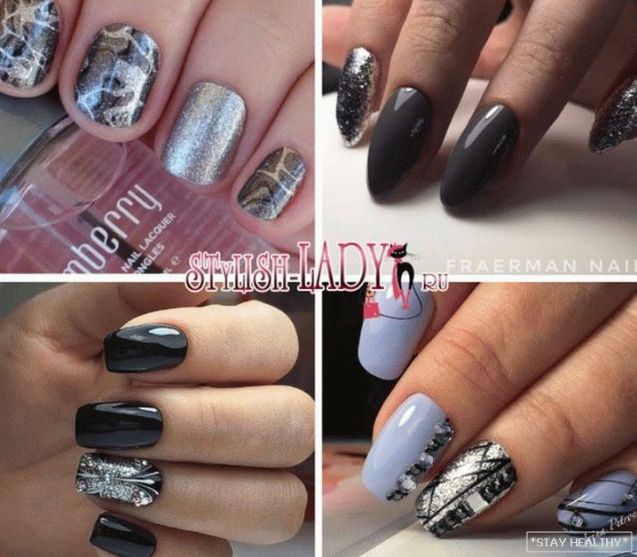 - З чорным. Серабрыста-чорны манікюр ідэальна падыдзе як да