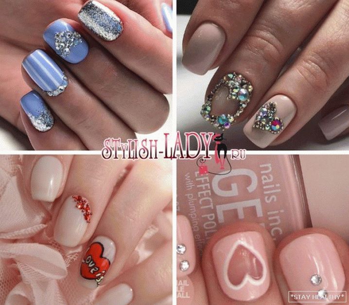 - Дызайн пазногцяў на 14 лютага са стразамі