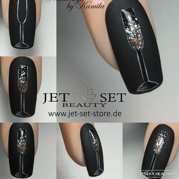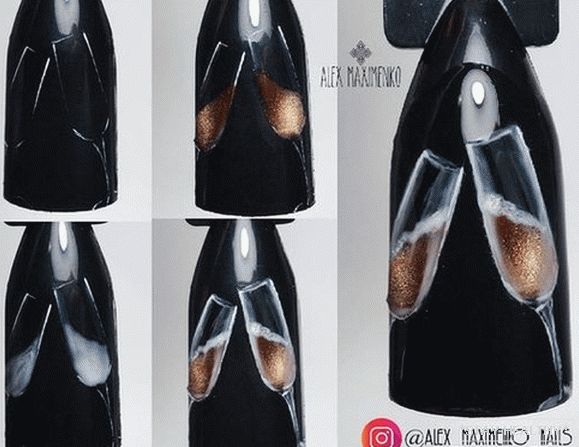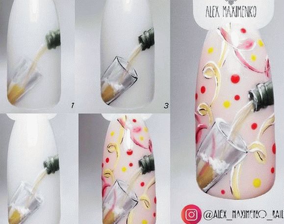 Спосабаў ўпрыгожыць навагодні манікюр куфлем шампанскага ці
