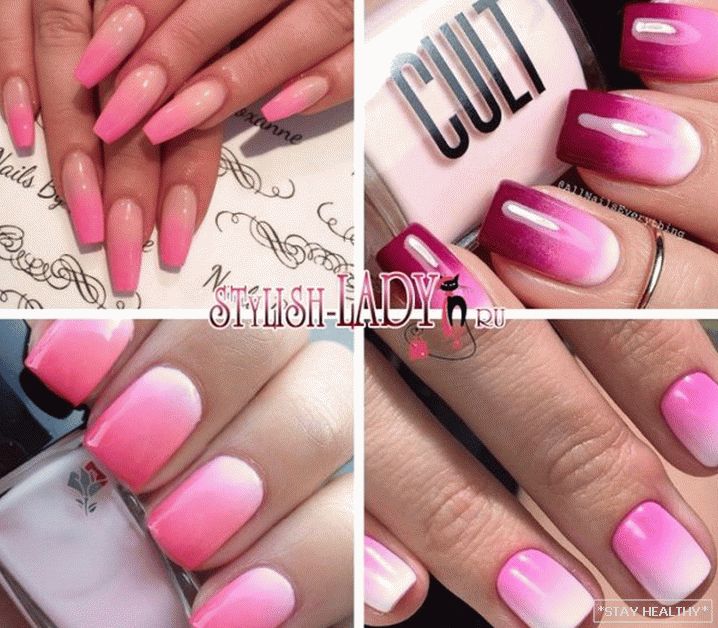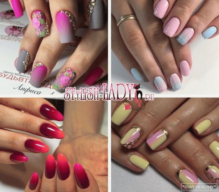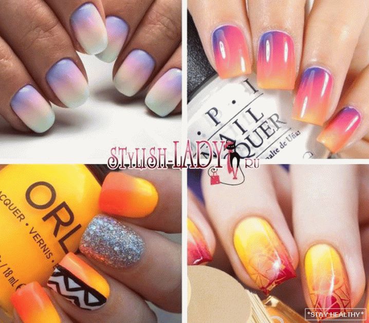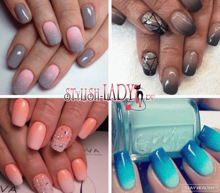 градыент тонаў. Цікава выглядае і манікюр, у якім на пары