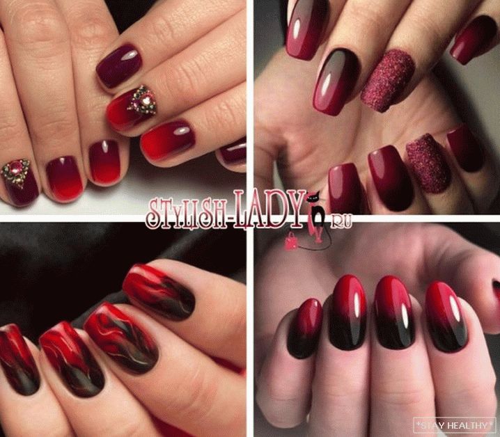 - чырвоны маникюр и омбре