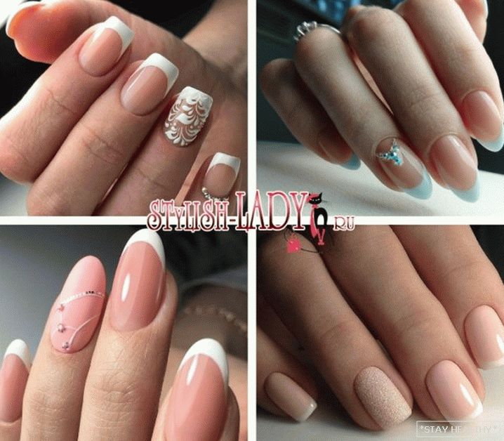 лаканічныя малюнкі а-ля карункі, нанесеныя тонкай іголачкай. - Добрыя фрэнч і месяцовы манікюр. Амаль класіка жанру – фрэнч ў