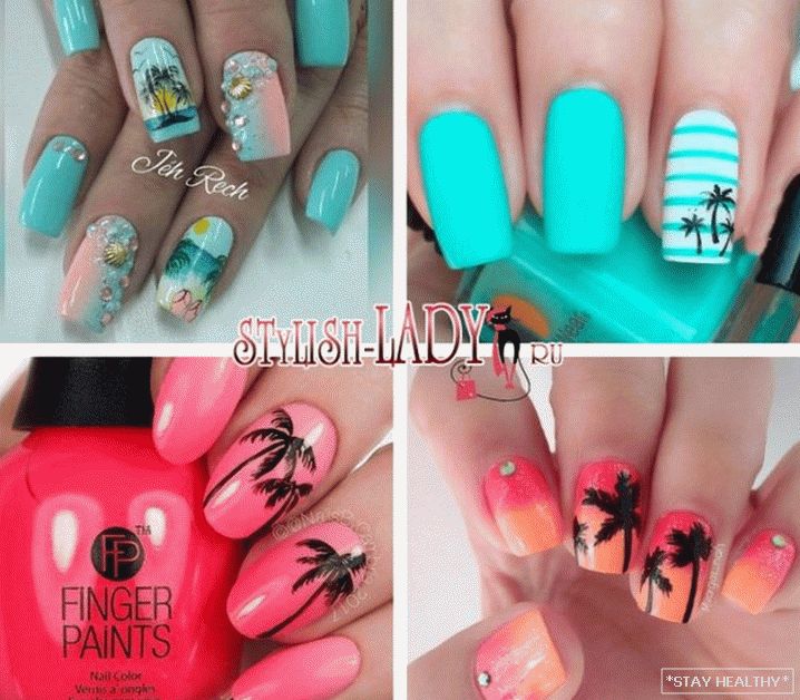 Трэнды і колеру ў манікюр з пальмамі