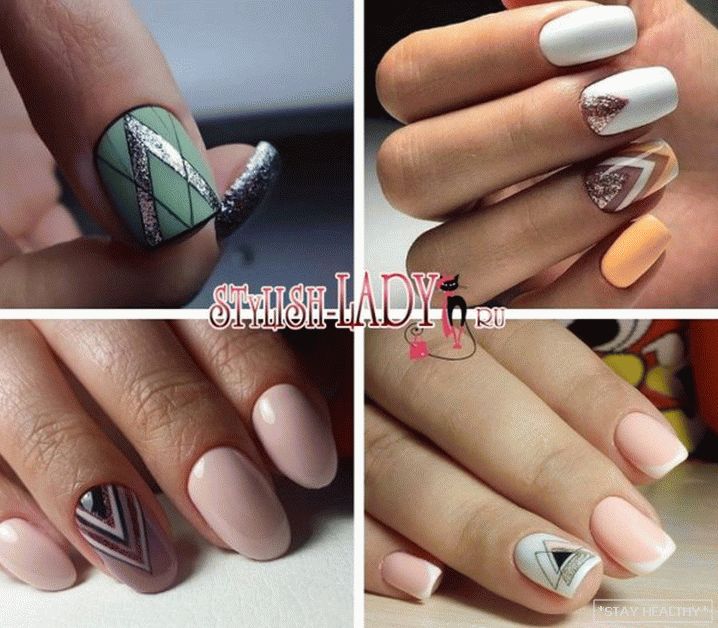 Трохкутнік падыходзіць для ўпрыгожвання ноготков рознай даўжыні і