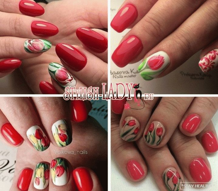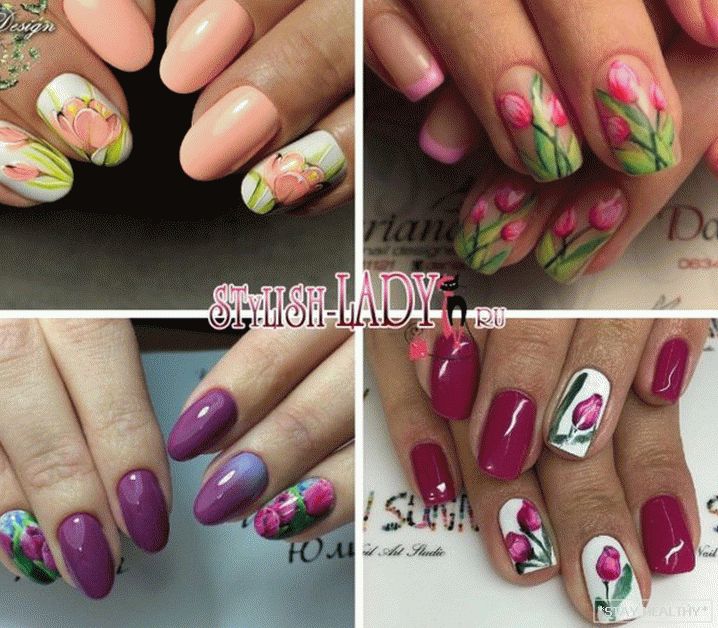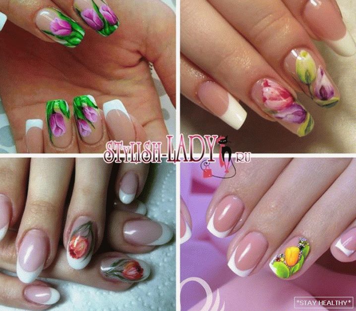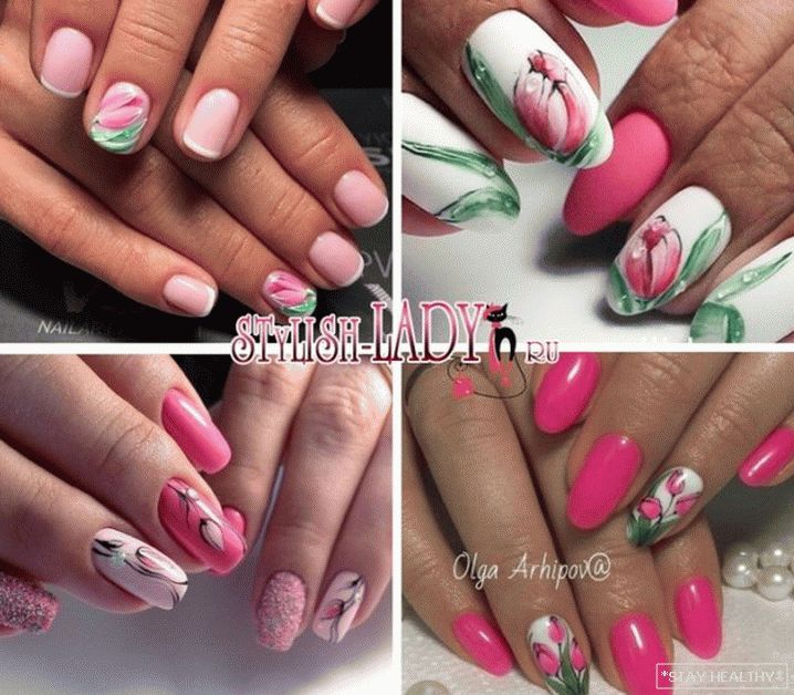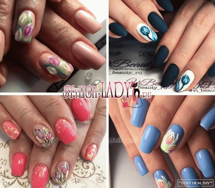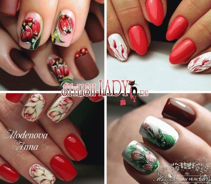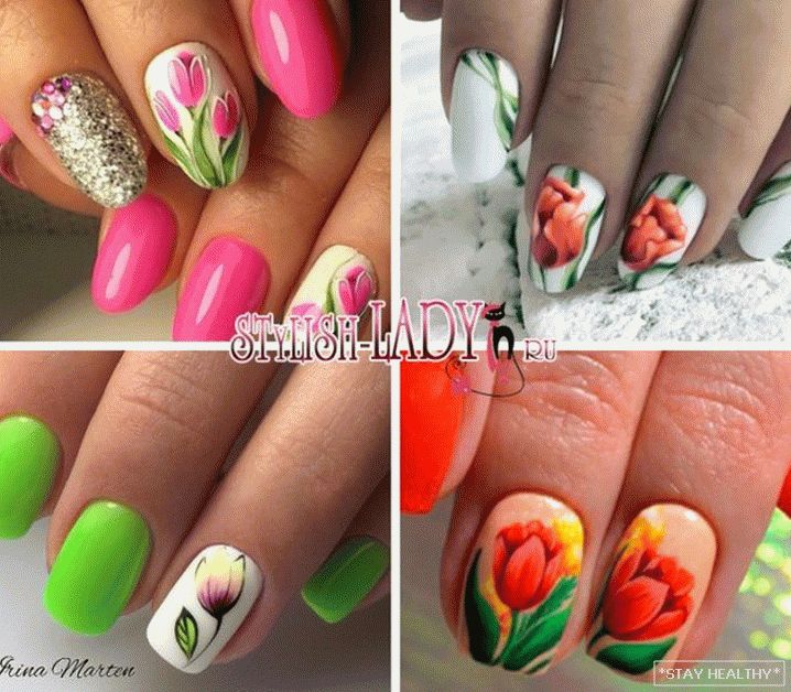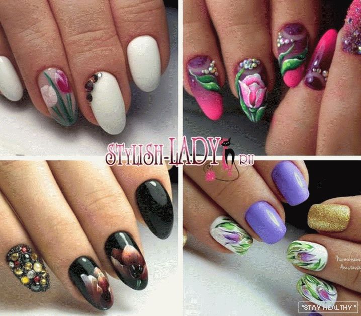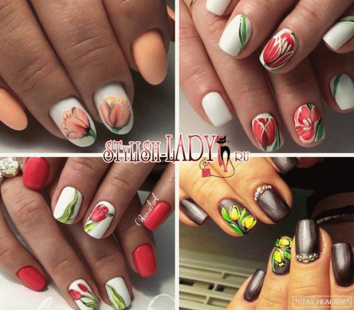цюльпаны. У гэтым варыянце іх часта выкарыстоўваюць для ўпрыгожвання пазногцяў