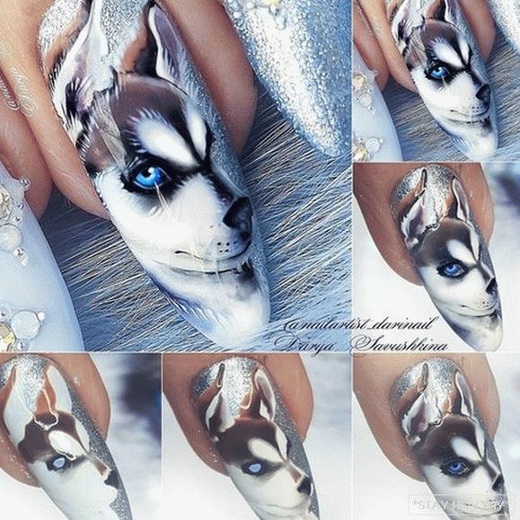 Прывабна глядзіцца манікюр з партрэтам сабачкі, але каб