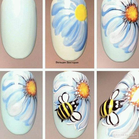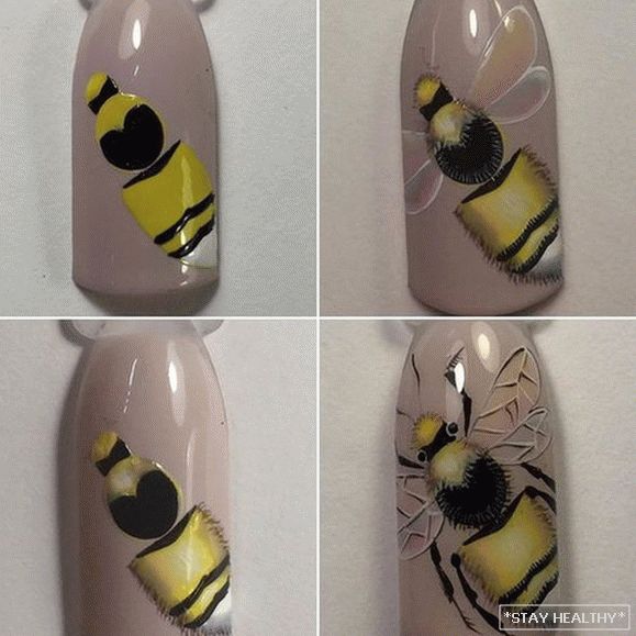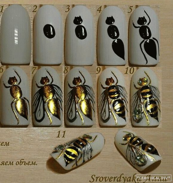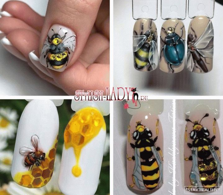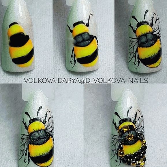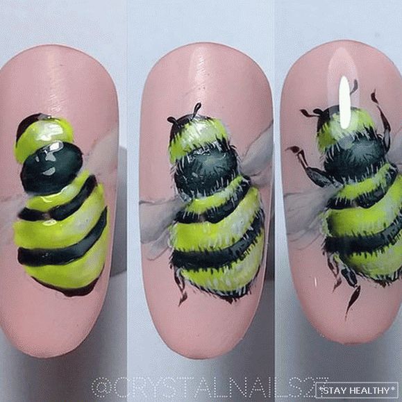 Аб’ёмны малюнак пчолы робіць манікюр асабліва выразным