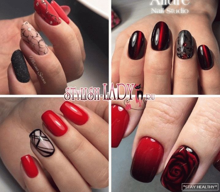 мэтанакіраваных жанчын – геаметрычны манікюр ў чырвона-чорных