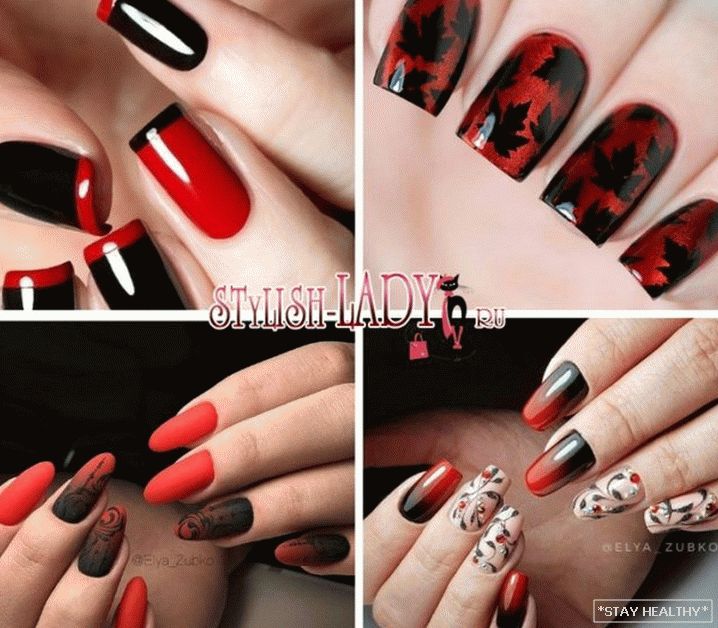 менавіта насычаных расфарбовак, таму чырвона-чорны дызайн пазногцяў