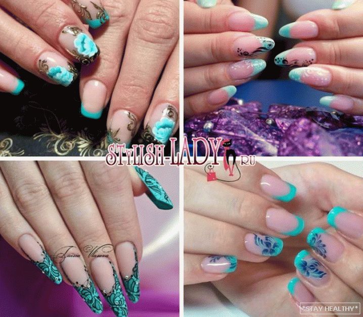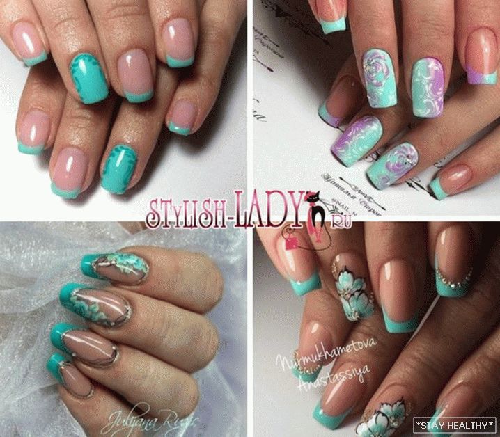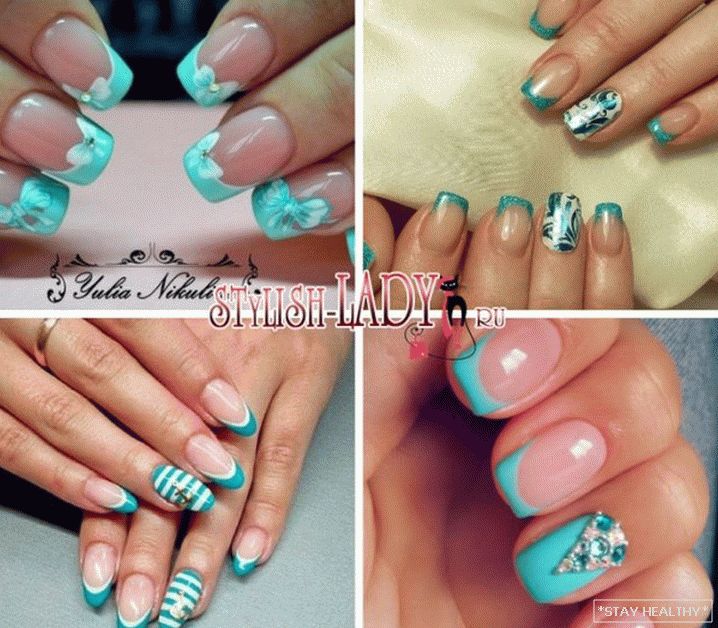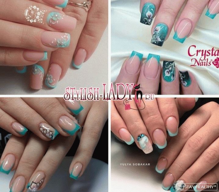 Выбіраючы ў якасці дызайну фрэнч у бірузовы танах, варта