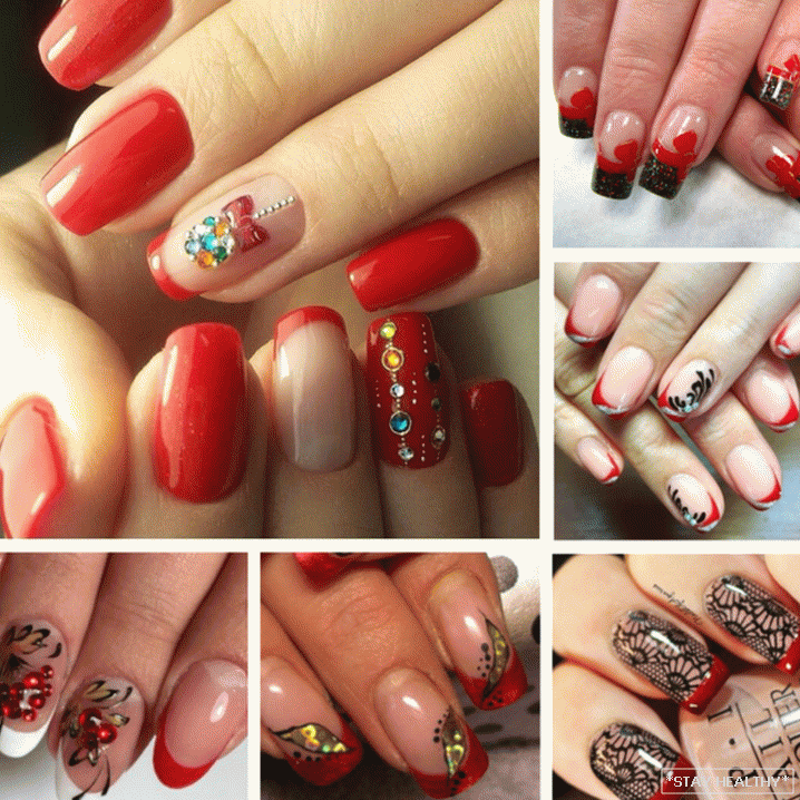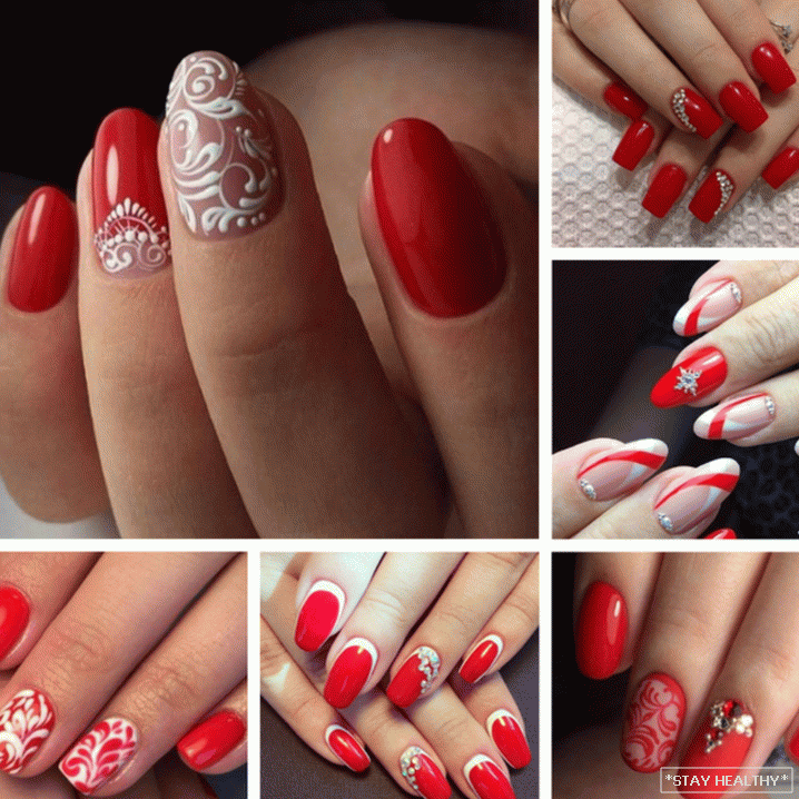 Ярка і сакавіта выглядаюць чырвоныя пазногці, упрыгожаныя сціплым белым