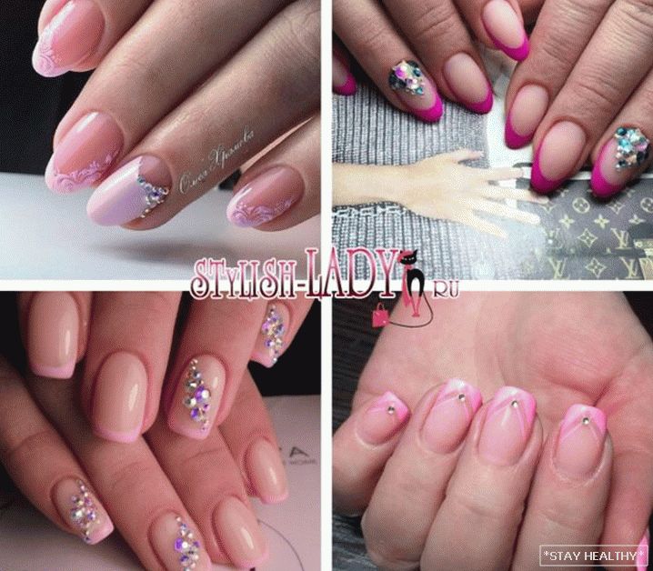 Цікавыя ідэі ружовага манікюру са стразамі