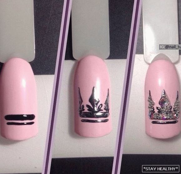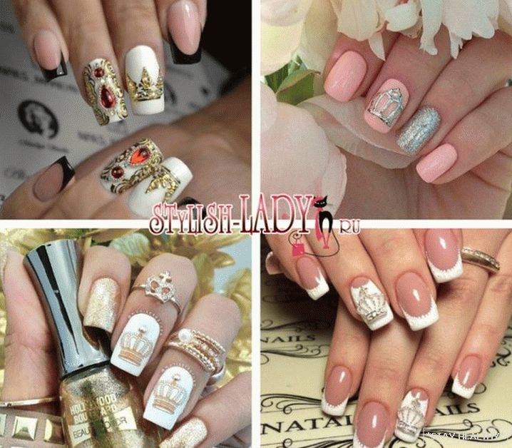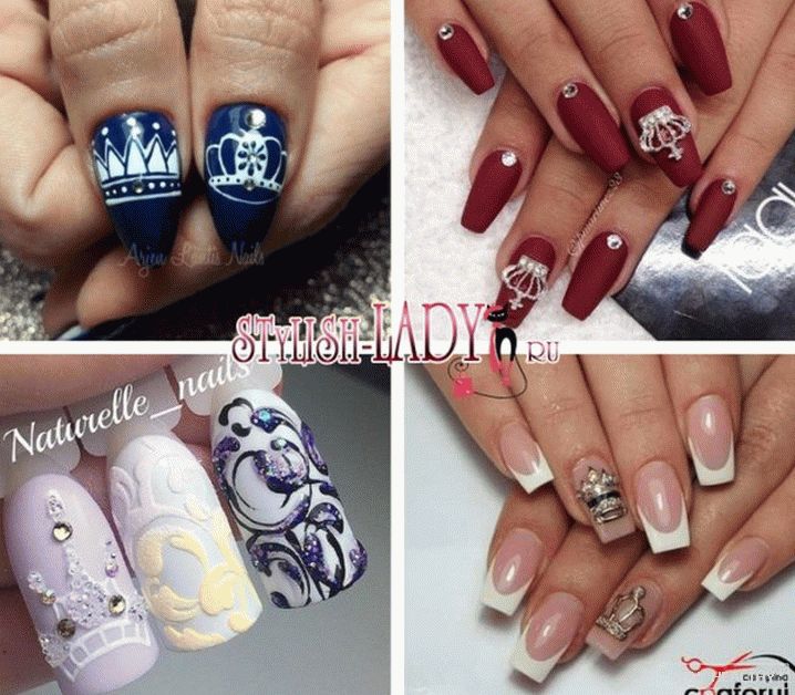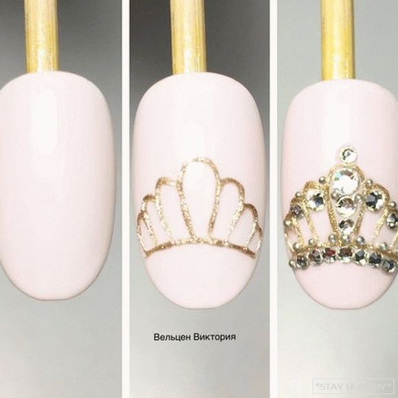 Манікюр, упрыгожаны каронай, выглядае высакародна і