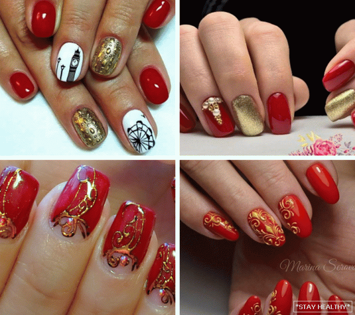 Манікюр для Новага года: чырвоны або бардо з золатам