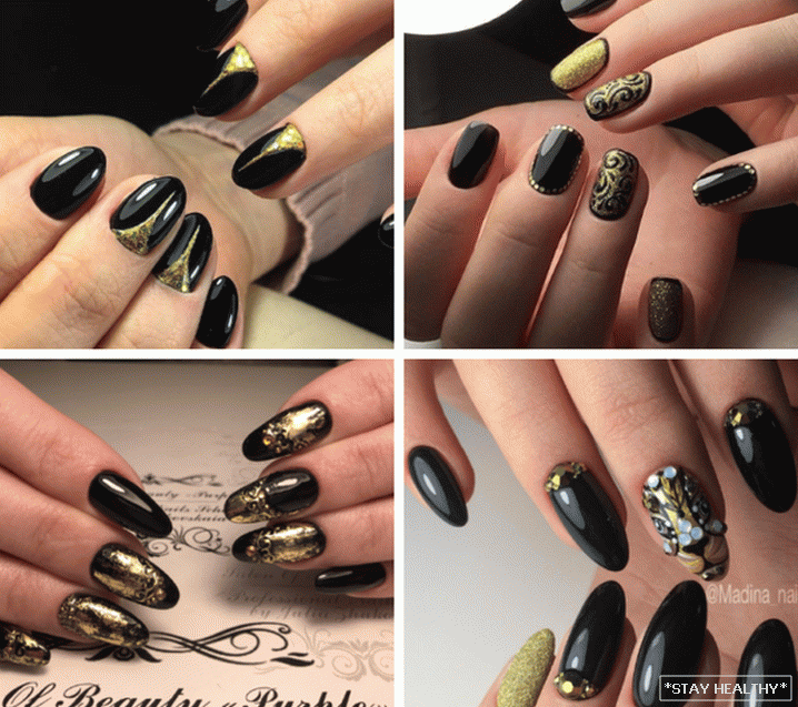 Выдатна глядзіцца чорны манікюр ў спалучэнні са стразамі, але ў