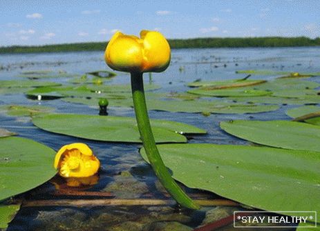 Кветкі жоўтага колеру, засяроджаныя на доўгіх падводных