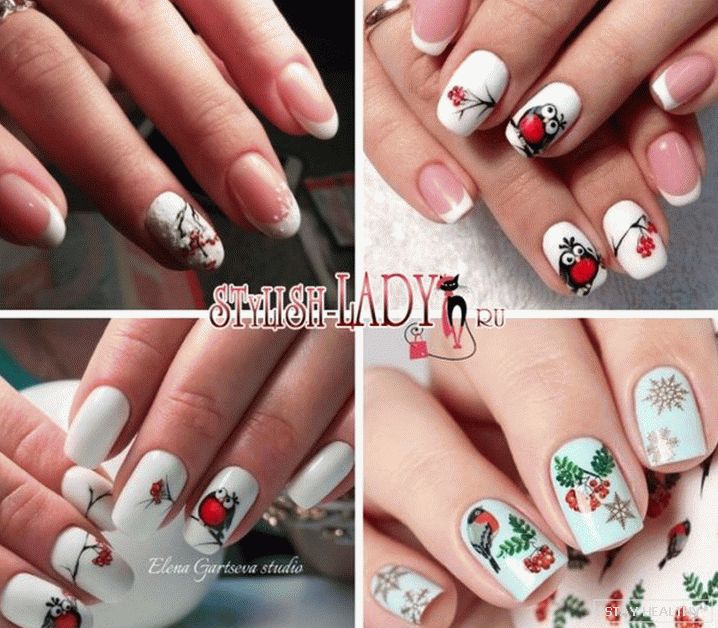 дапаўняюць лісце, птушкі, сняжынкі і снегавікі. святочны манікюр