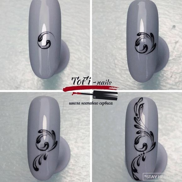 серабрыстай або белай роспісам. Малюнкам можна ўпрыгожыць ўсе пазногці