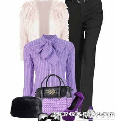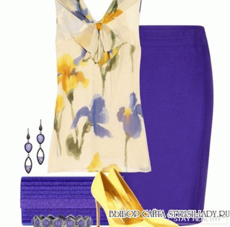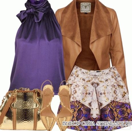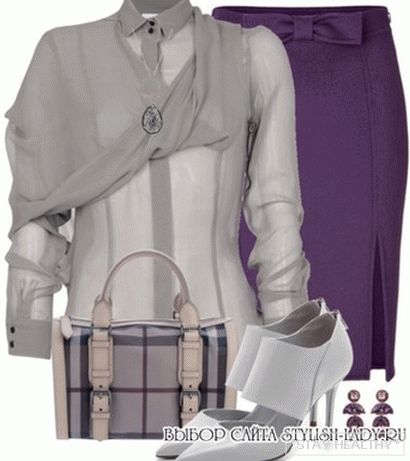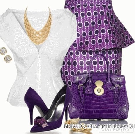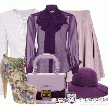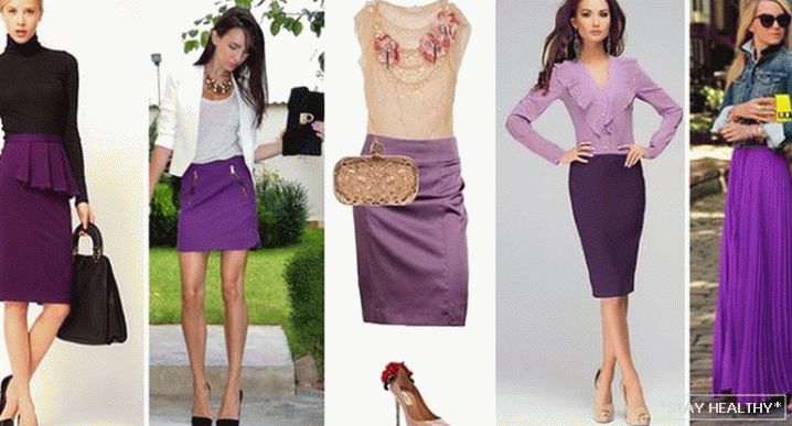 Фота удалых спалучэнняў фіялетавых спадніцы і блузкі