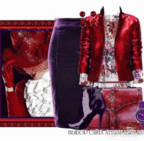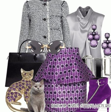 З спадніцай прыгожага фіялетавага колеру ўдала спалучаецца пінжак на