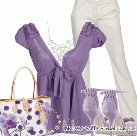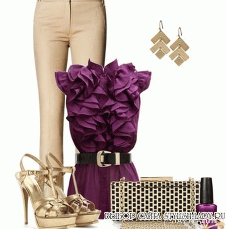 Фіялетавая блузка будзе добра глядзецца з залатога колеру