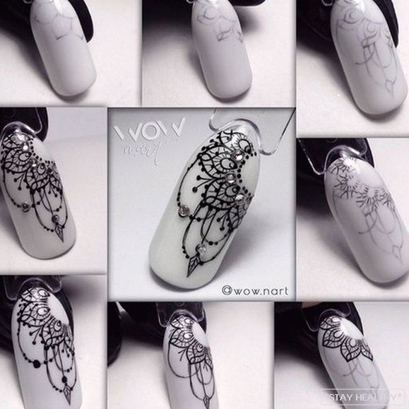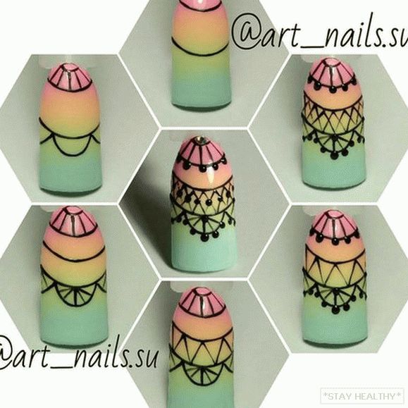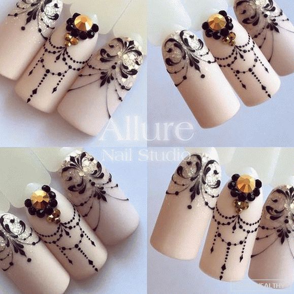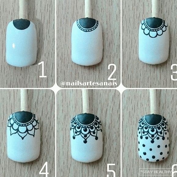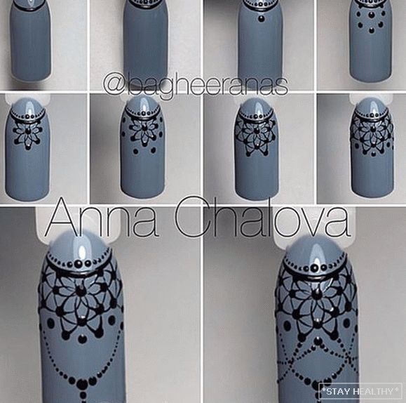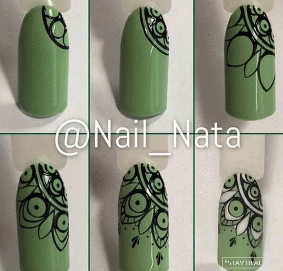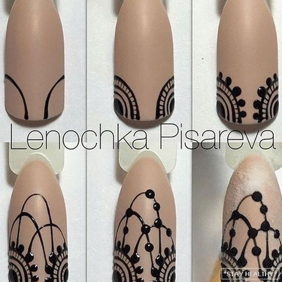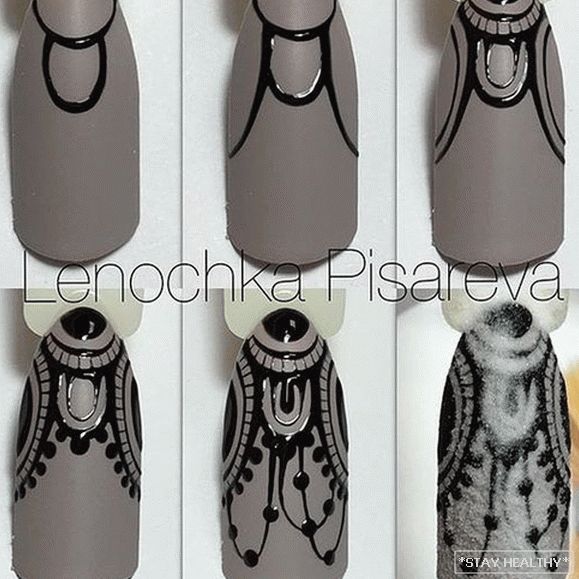 за кошт багацця дэталяў і завіткоў, яго лепш рабіць на адным пазногці,