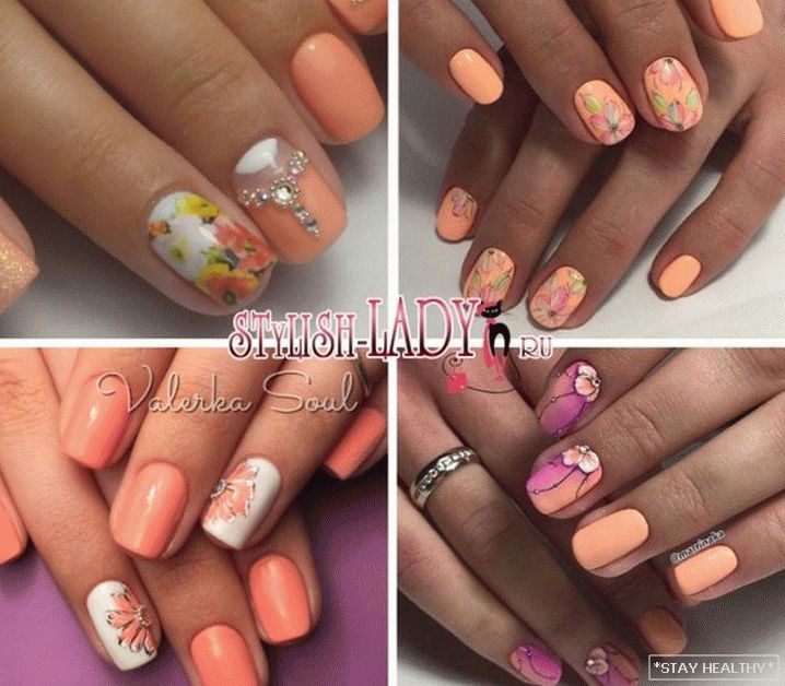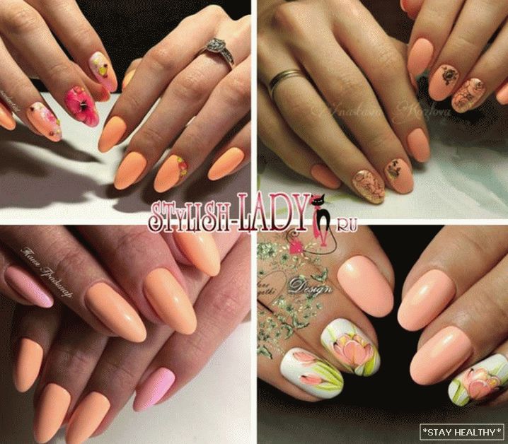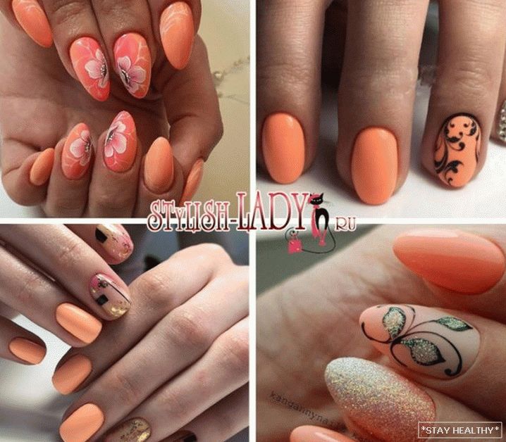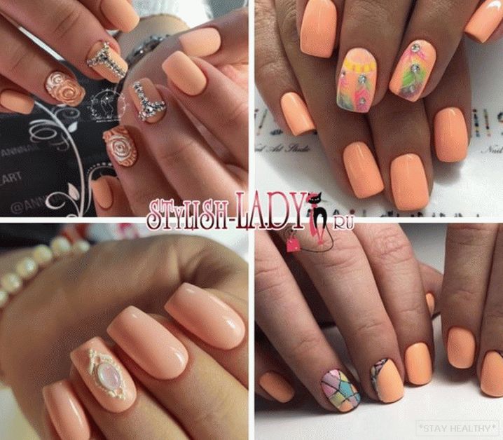 смела выкарыстоўваць модны персікавы адценне гель-лаку. трэндавы