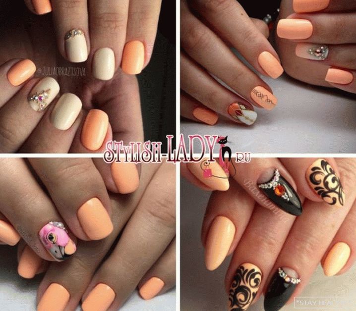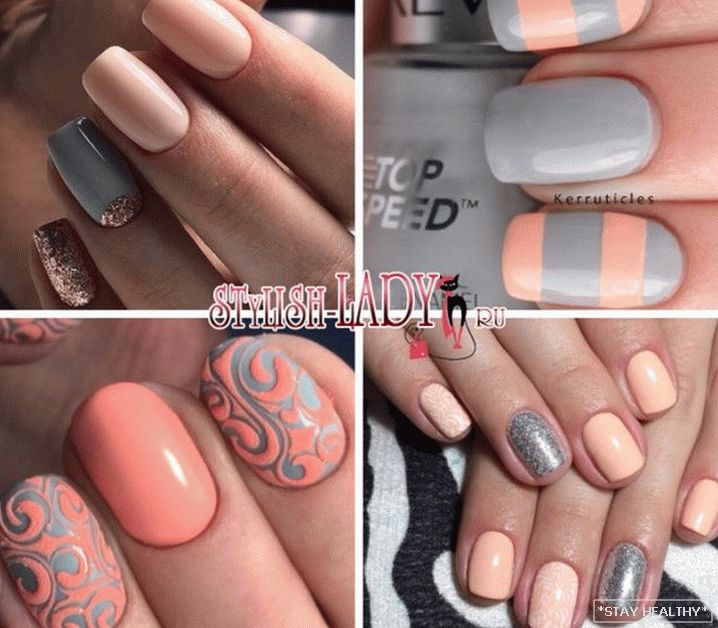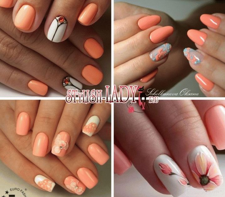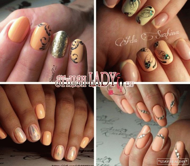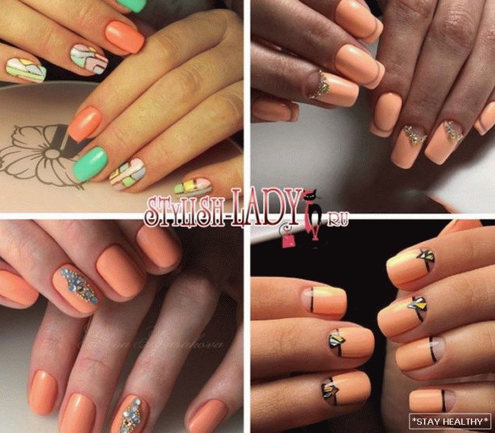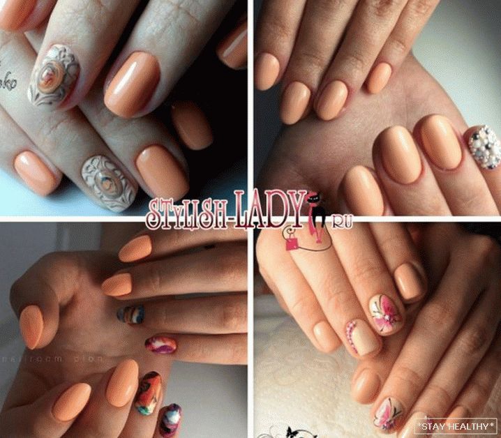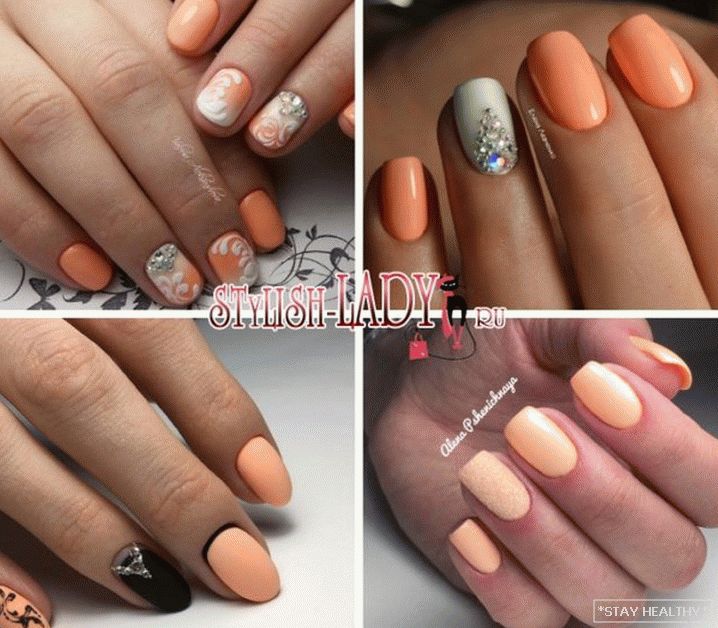 Вельмі прыгожа, элегантна і сучасна выглядае персікавы лак з