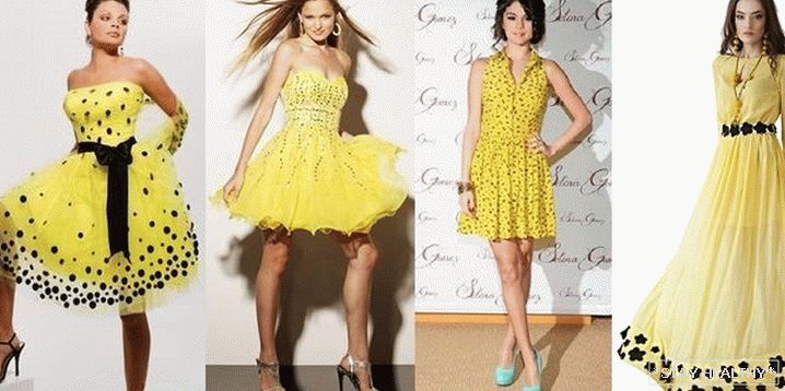 Жоўтае сукенка па-за залежнасці ад крою будзе правакаваць у
